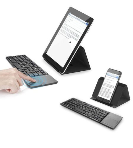 Portable Mini Bluetooth Keyboard Wireless Foldable Trackpad Keyboard for IOS Android Windows Ipad Black